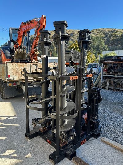 Our Cat 305E2 CR 5 tonne has time saving tilt hitch and hydraulic flow adjustment controlled in the cab electronically by the compass monitor for delicate or speed work with 90 degree doherty snaplock tilt head for efficiency and we have a drilling auger.